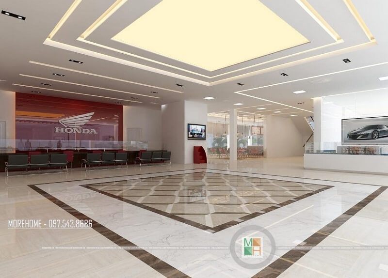 Chúng tôi đã thiết kế một sảnh trung tâm văn phòng để sát hạch lái xe Honda cao cấp.